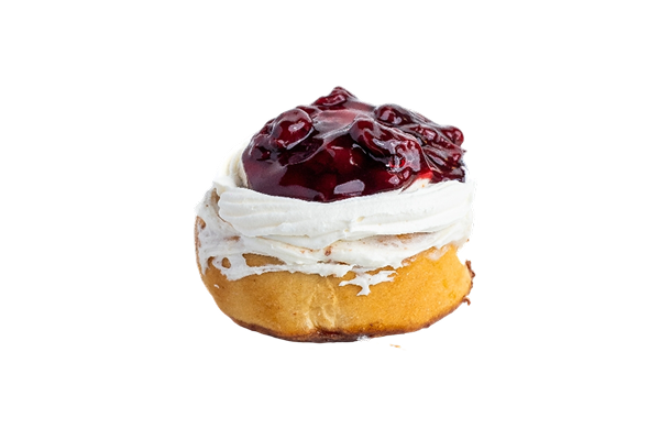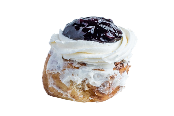 Enjoy our classic Cinnzeo Roll, now enhanced with a delicious blueberry topping.